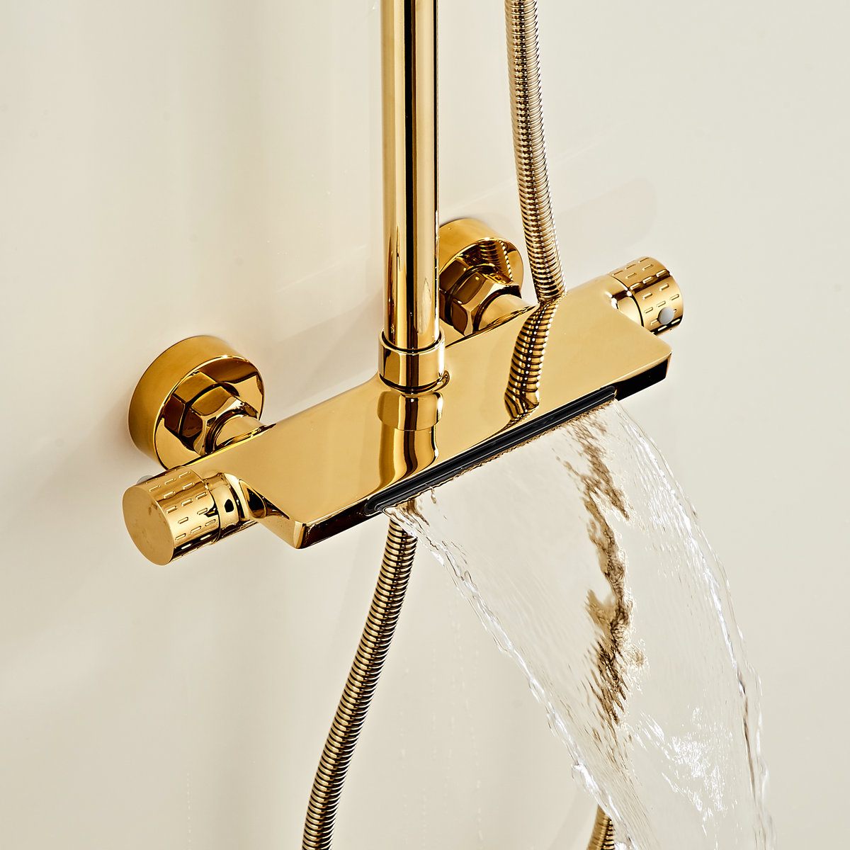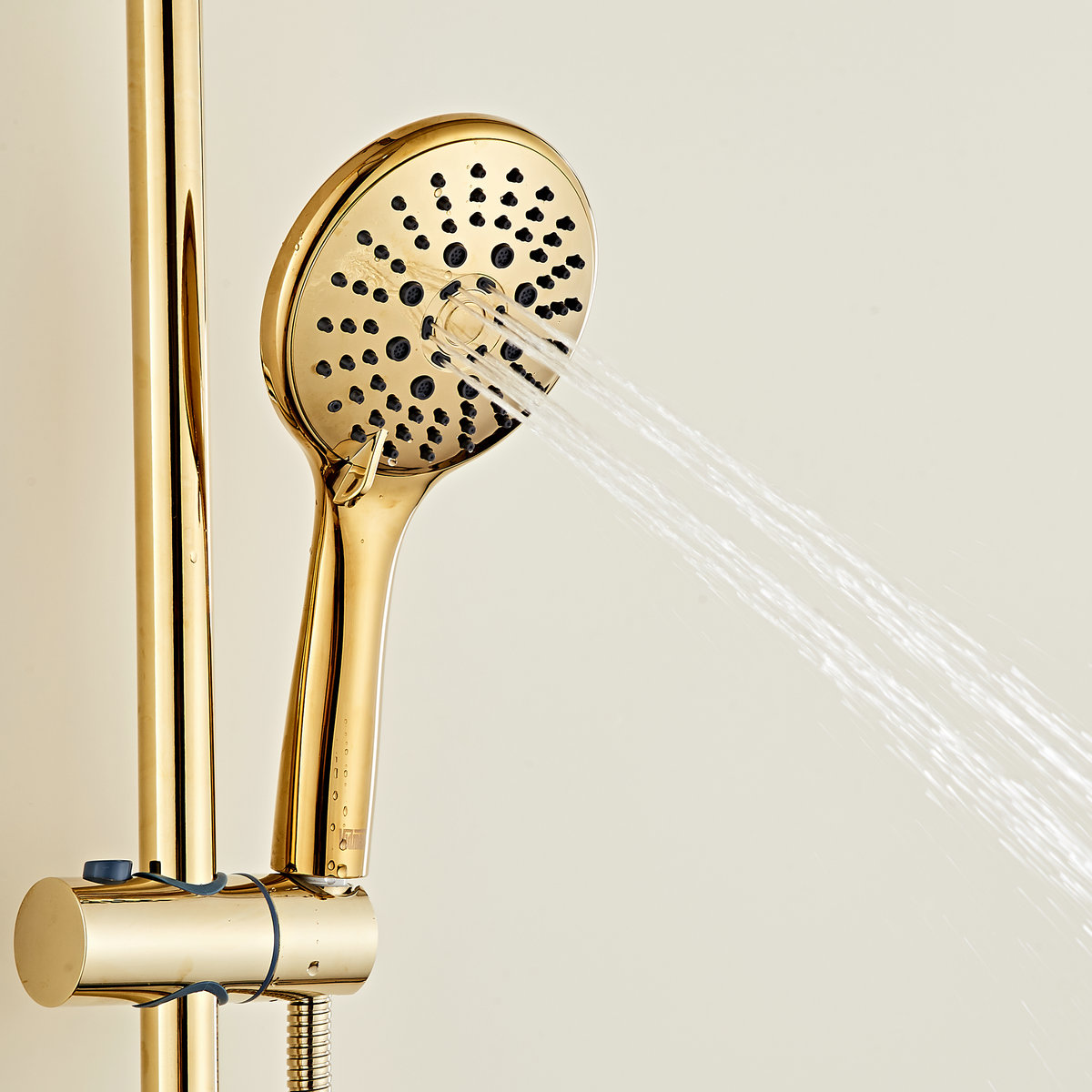 Bathroom Shower Set With Hand Held Shower Head adopts high-quality and corrosion-resistant materials, provides water-saving technology, temperature control technology and adjustment functions. It is easy to install and suitable for most bathing places.