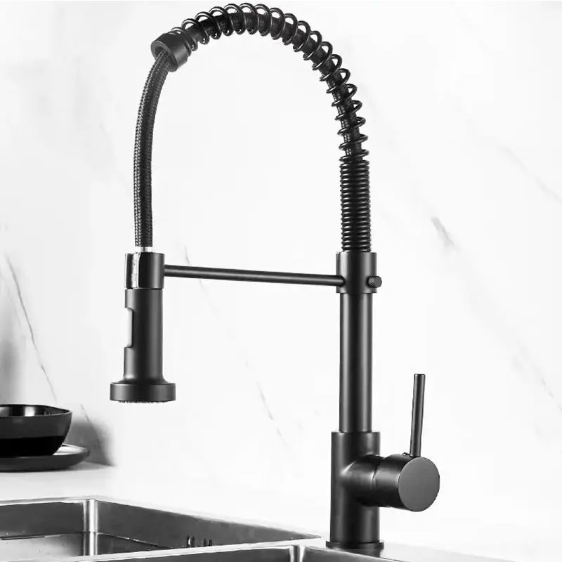 The single handle spring loaded kitchen faucet provides soft aerated stream and splash-free powerful spray due to its hard rubber sprayer holes. 360 degree kitchen sink faucets sprayer, the switch can be placed in every position as you like.