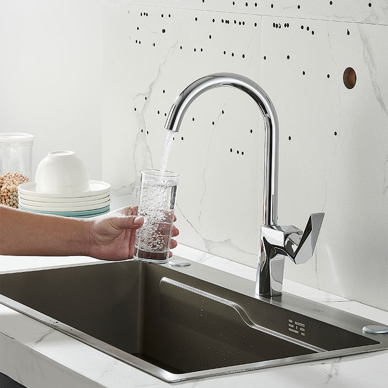 Combining stylish design with practicality, the Matte Black Dual Function Kitchen Faucet features a matte black finish for modern elegance. Its dual handles control both spouts simultaneously, while the pull-down sprayer easily reaches sink corners and large cooktops, and the drinking faucet provides purified water on demand. This two-handle, dual-function design blends luxury and practicality, perfect for a variety of kitchen needs.